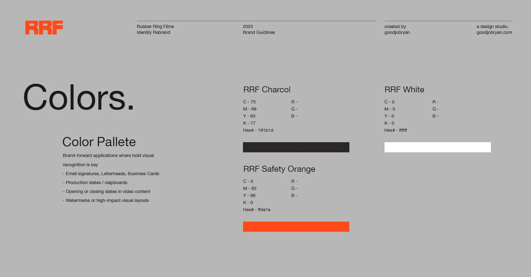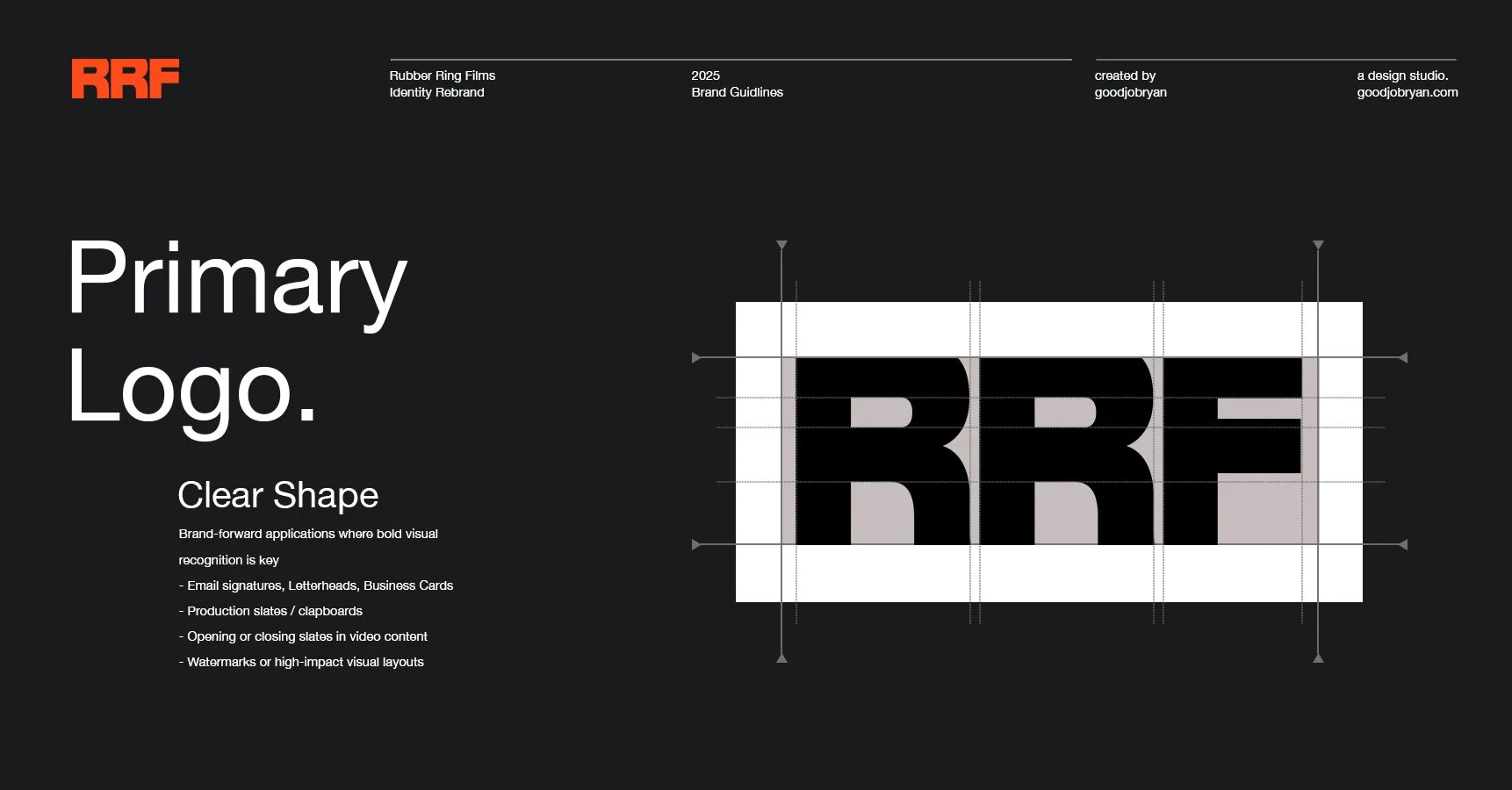 I was commissioned by Rubber Ring Films, a film production company known for award-winning documentaries and feature films, to lead a complete rebrand. The goal was to create a bold, modern identity that reflected their cinematic vision while providing a flexible system for digital, print, and on-set applications.